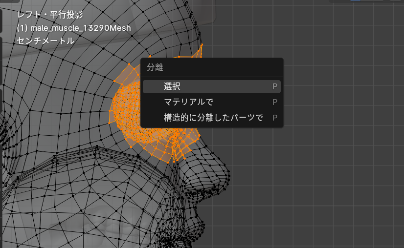 選択したメッシュをShift+Dで複製し、Pを押して選択で分離します。