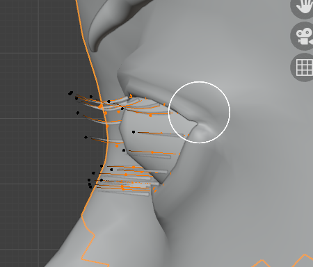 Alt+Aで選択解除してから下まつ毛だけをすべてLでリンク選択して、下まつ毛の形状を整えていきます。