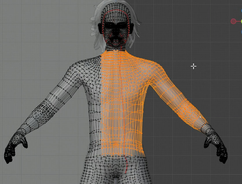 編集モードでAlt+Zを押して透過表示し、体のメッシュを選択します。