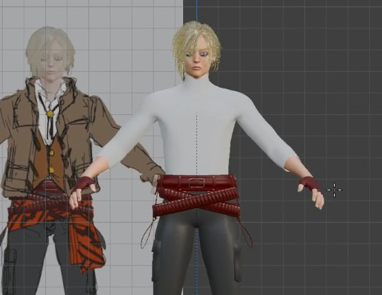 この後、正式なマテリアルを設定したり、服のシワなどの凹凸を作ったり、各オブジェクトのマテリアルをテクスチャ化したりする作業があります。