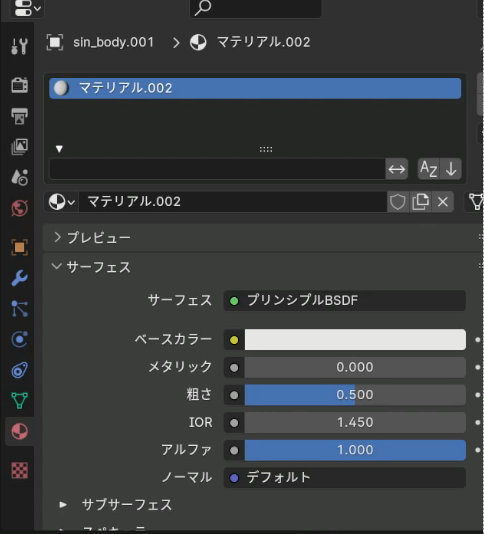 マテリアルを新規作成してベースカラーに適当な色を設定します。