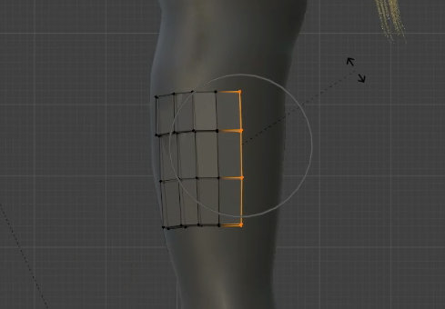 この状態で拡大すると選択したメッシュの周囲も滑らかに拡大されます。
