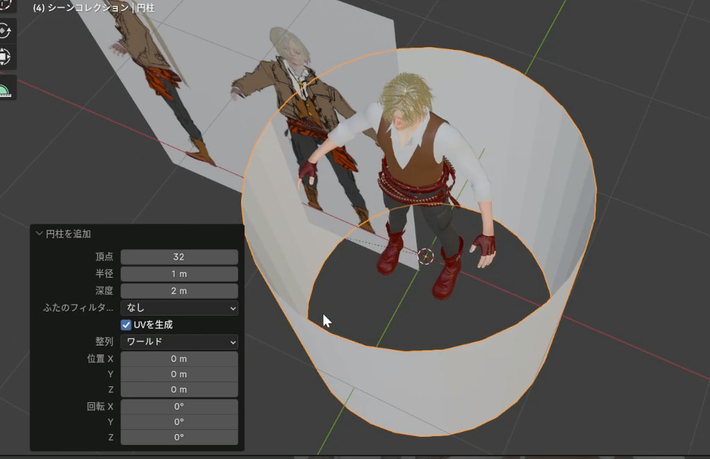円柱を使って腰に巻いている布を作ります。