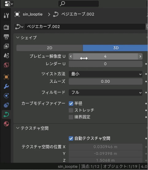 頂点を増やしたいときは二点を選んだ状態で右クリック→細分化を選択するか、先端を選んだ状態でEを押してカーブを延長します。