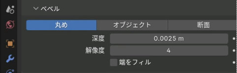 ベベルの丸めの深度で断面の大きさを調整します。