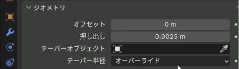 ジオメトリの押し出しに適当な数値を入力すると断面を楕円形にできます。