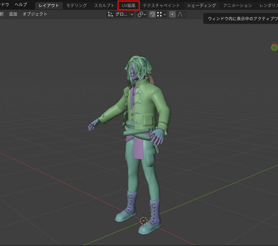 UV編集のタブを開きます。