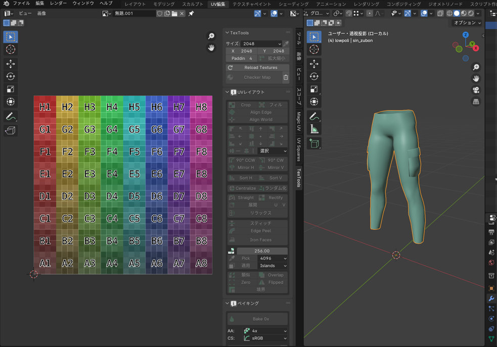 今回は代表でズボンのUV展開を見てもらいましょう。