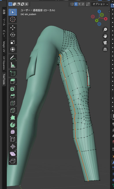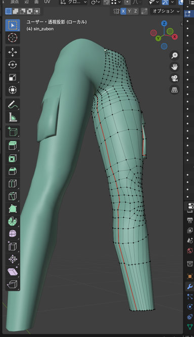 オブジェクトモードでズボンを選択して「/」を押し、ズボンだけを表示します。