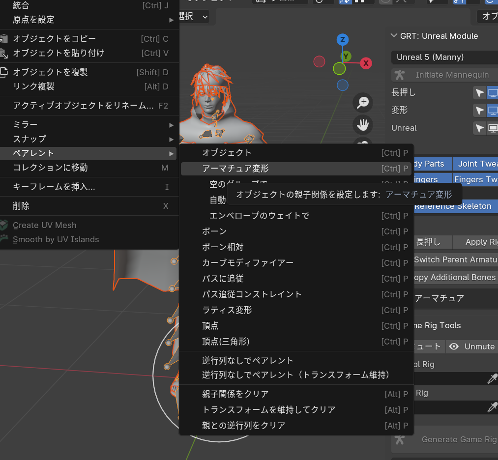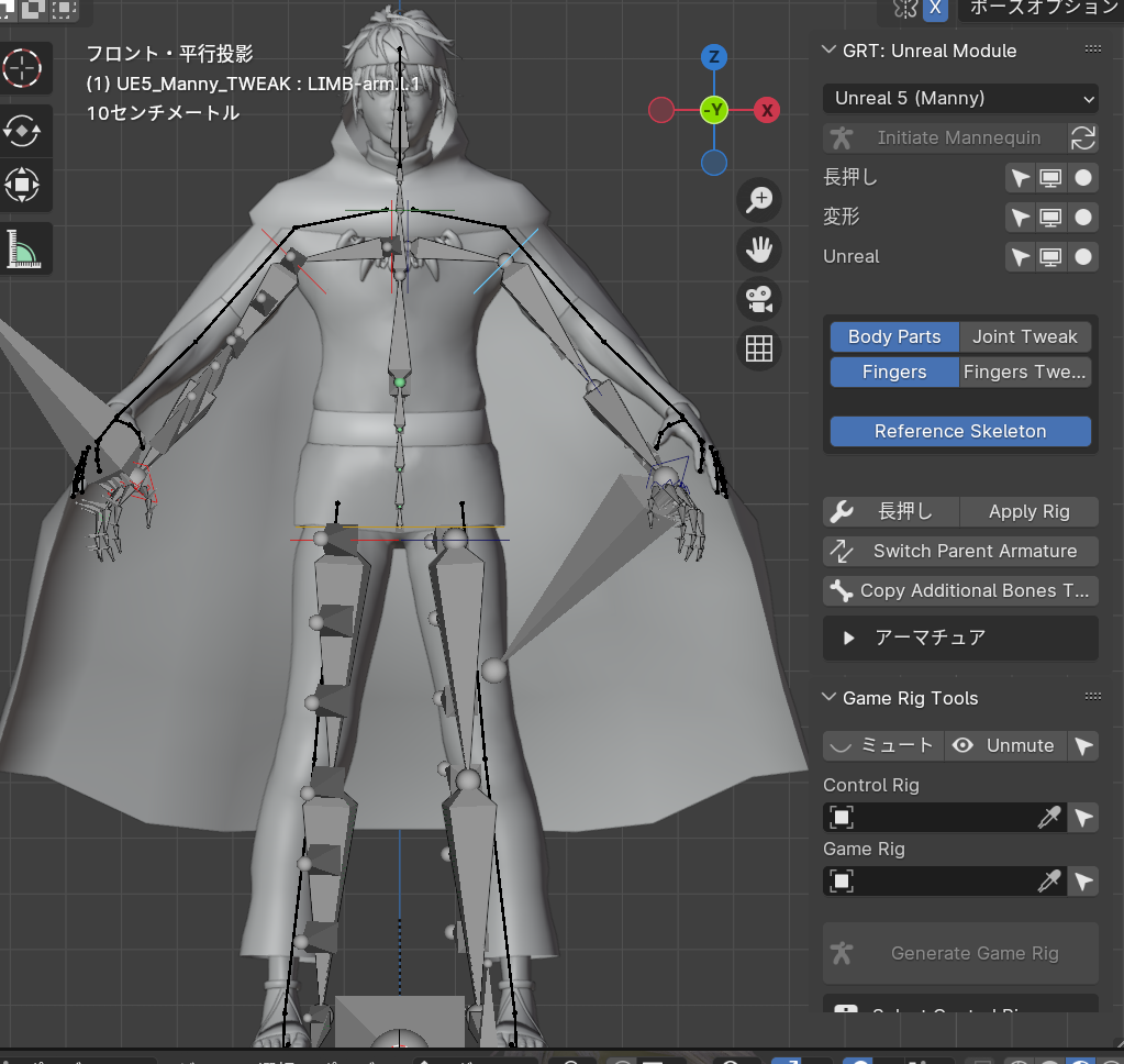 Blenderのアドオンを使ってUE5に対応したスケルトンを作成します。