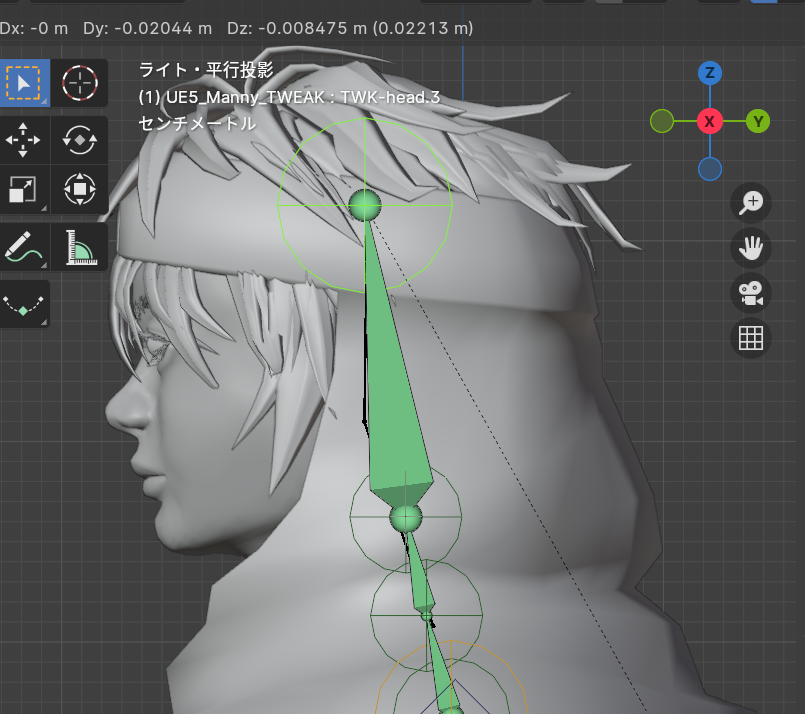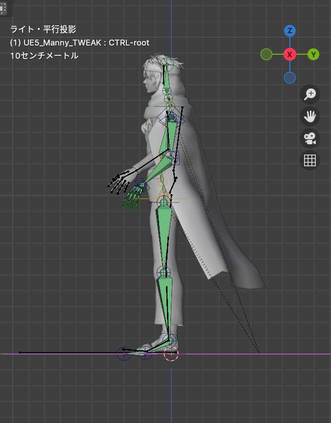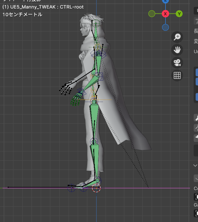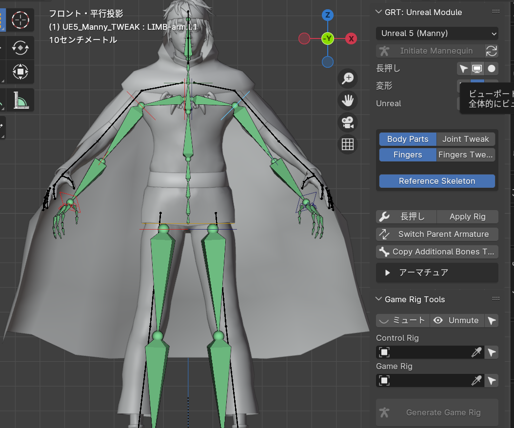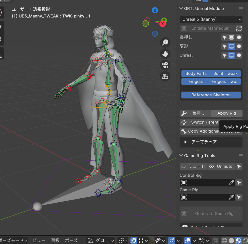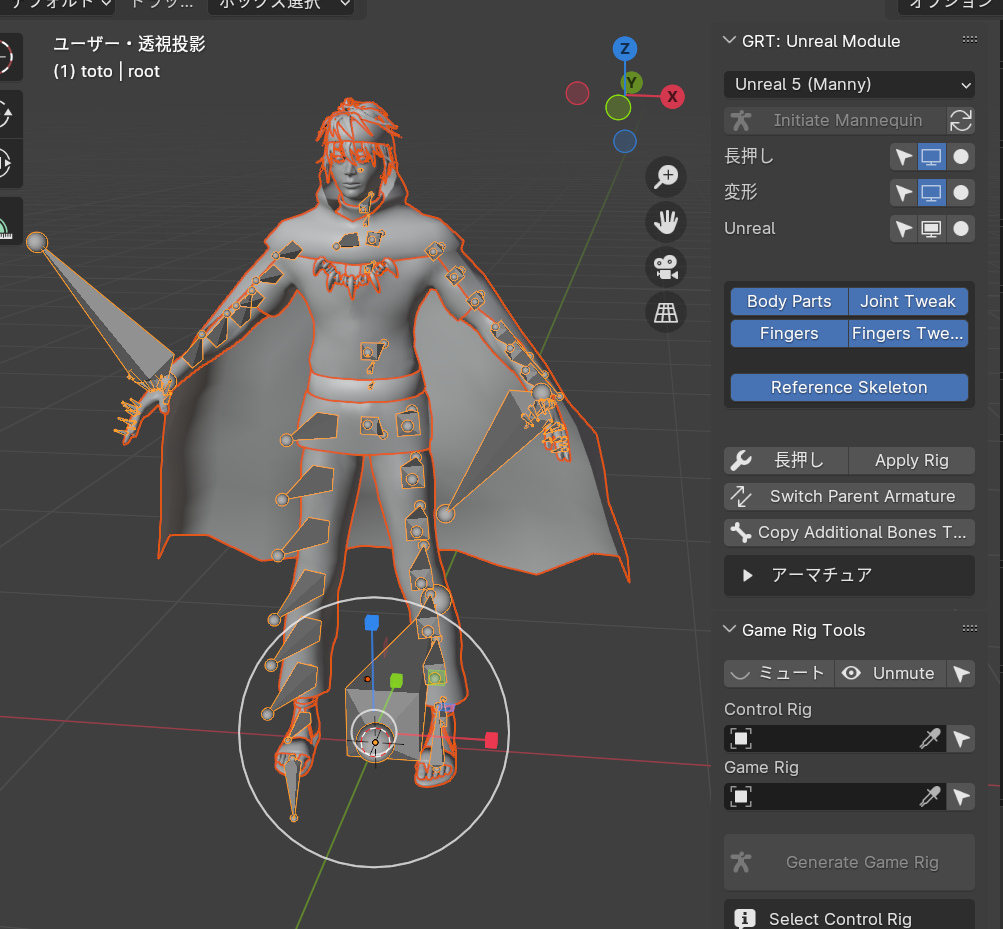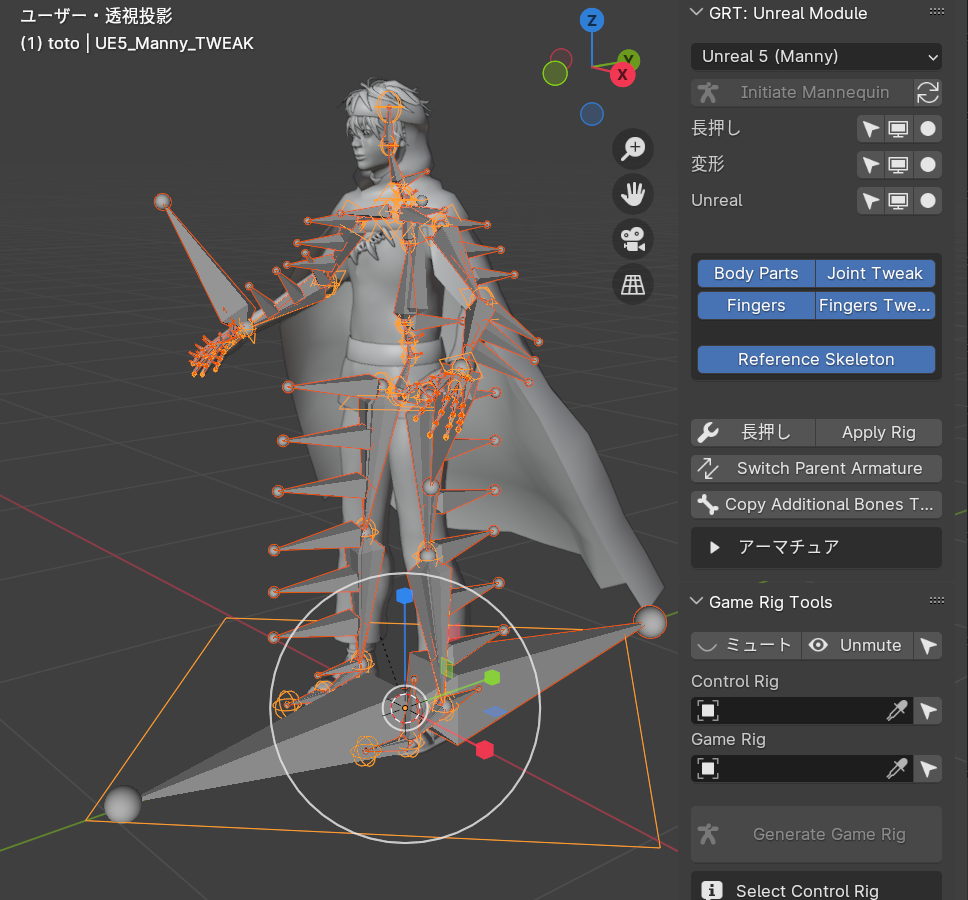 このボーンにGameRigToolsのボーンをぴったり合わせるように編集していきます。