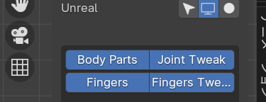 デフォルトではBodyParts、Fingersだけが表示されているので、JointTweak、FingersTweakをクリックして表示させます。