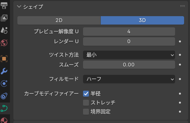 カーブの面の向きをそろえるところまで出来たらまだメッシュ変換は行わず、カーブの形状を変えていきます。
