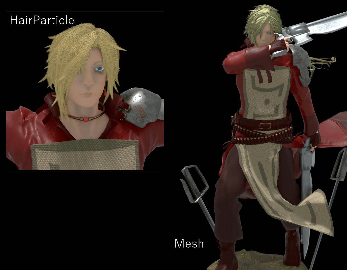 以上、ヘアパーティクルをなるべく楽にメッシュに変換する方法でした。
