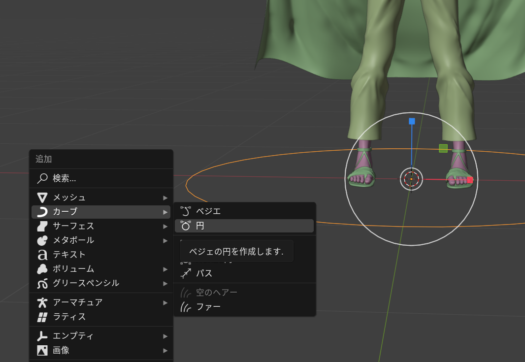 オブジェクトモードに戻り、カーブに変換します。