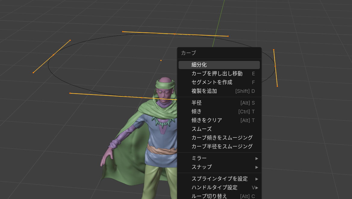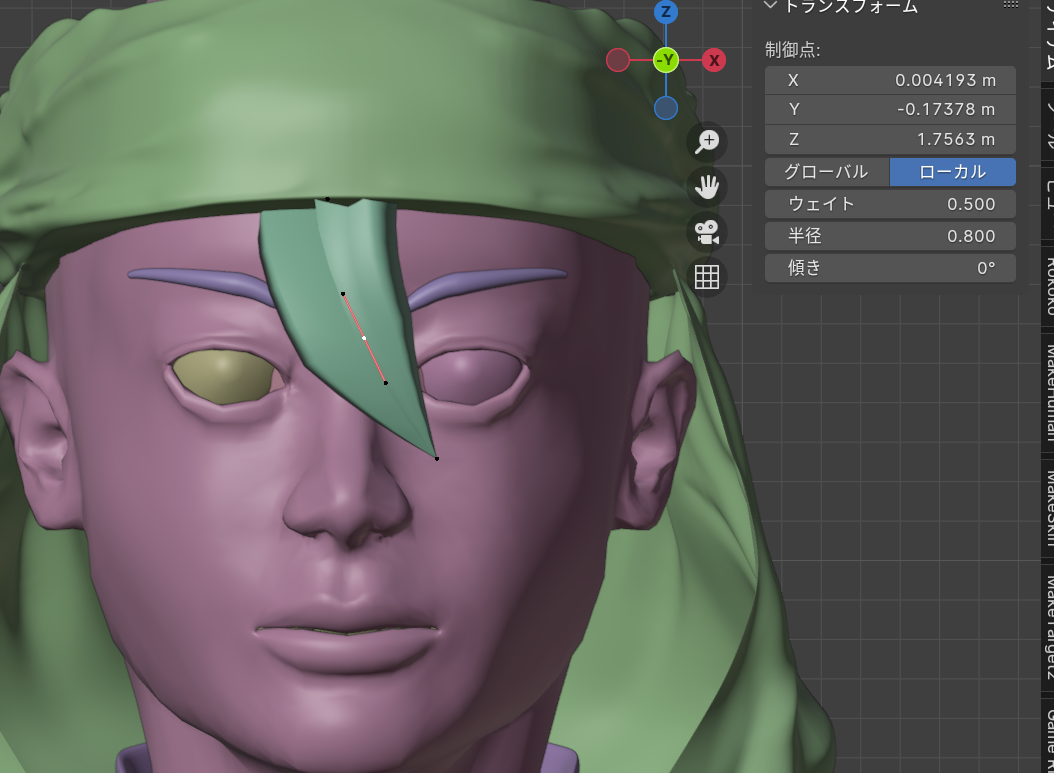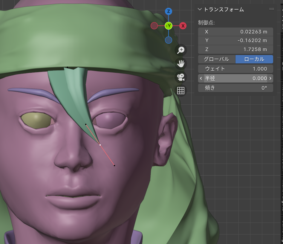 ベジエカーブで眉毛のだいたいの形をかたどった下書きをしておきます。