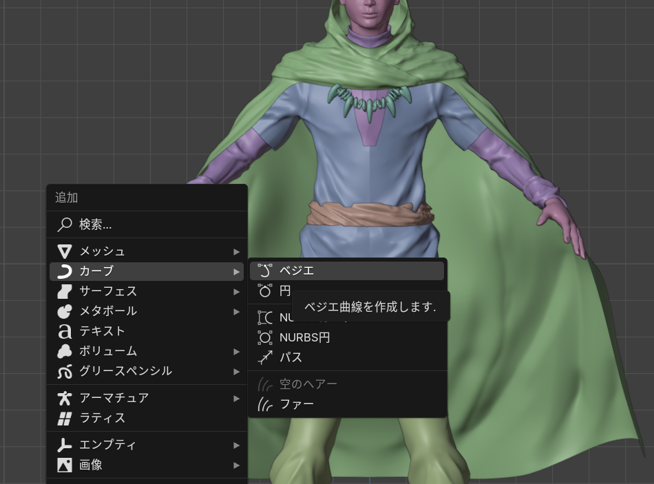 【ヘアパーティクル用のメッシュを作成する】