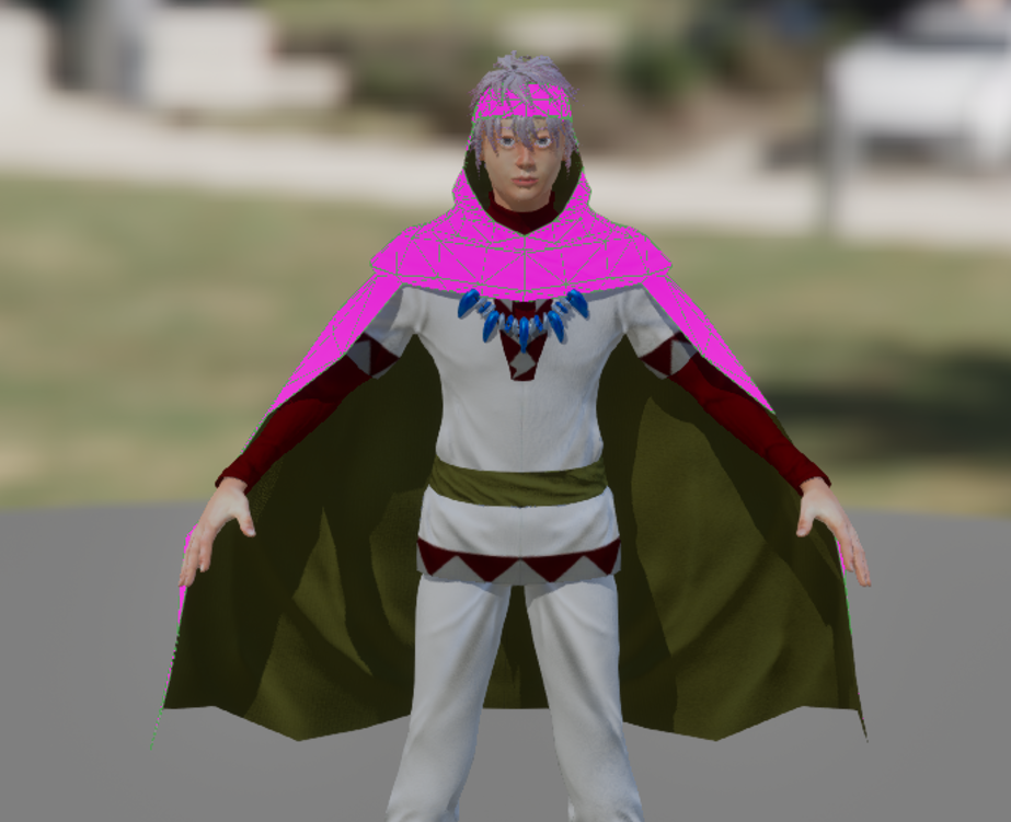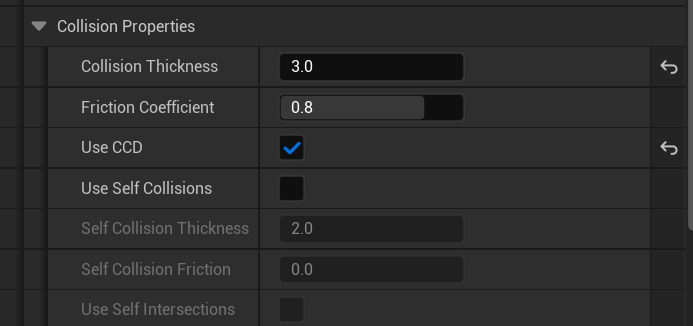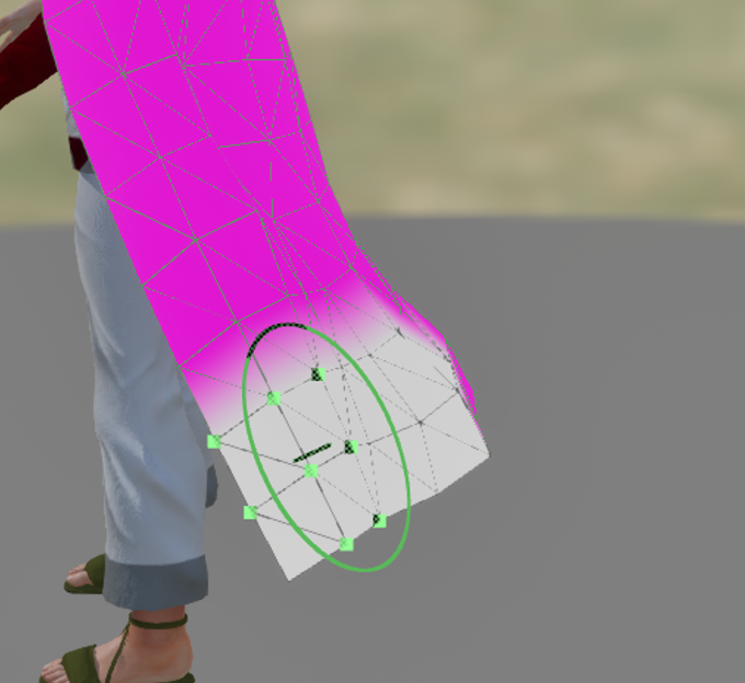 この解決方法はわかっていないので、アニメーションプロパティで布の動きの自由度を下げることで何とか貫通を減らしています。