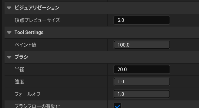 クロスタブの下のほうのクロス値とブラシサイズを調整します。