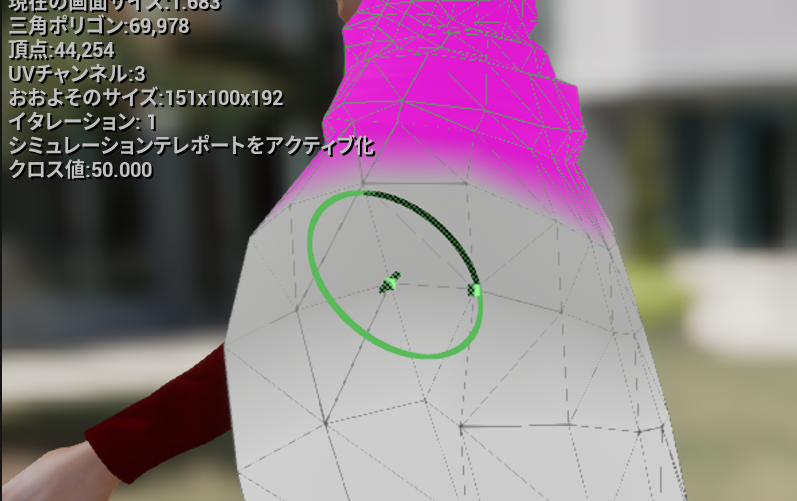 自分の場合、クロスシミュレーションをするといつもこのように布がコライダーとコライダーの隙間に挟まって体を貫通したように見えてしまいます。