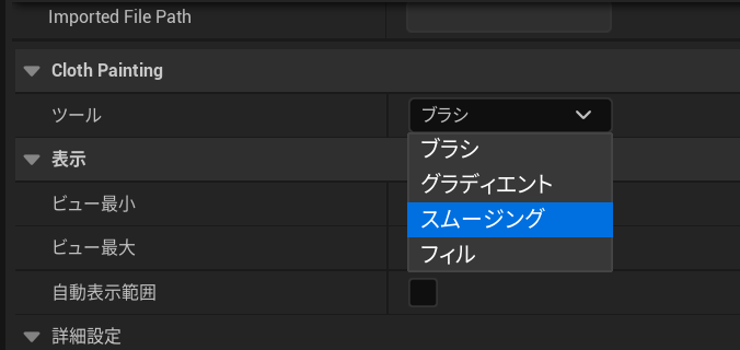 クロス値の変化を滑らかにしたいときはクロスタブのツールをブラシからスムージングに変更します。