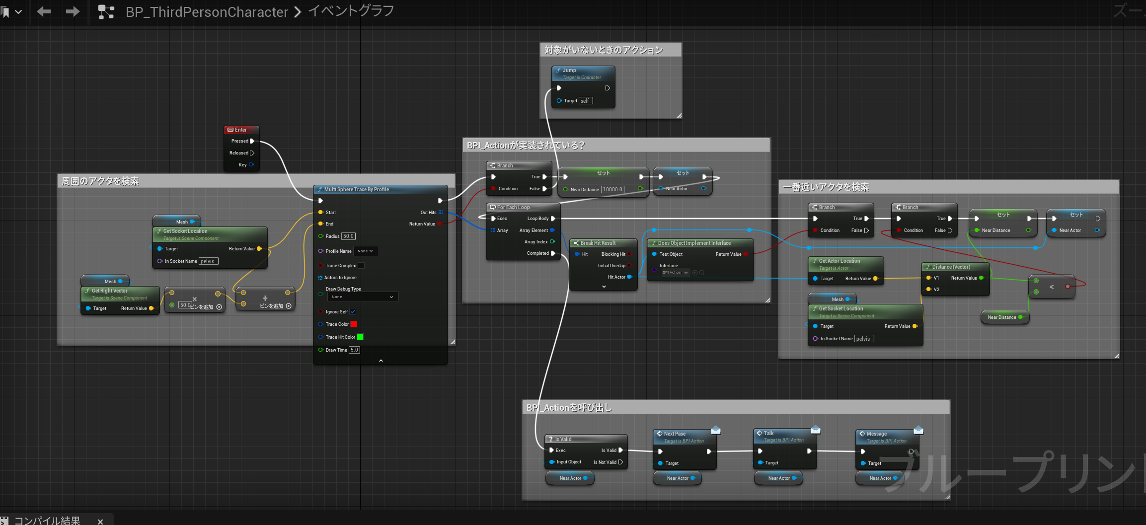 Enterを押すと近くのアクタを検索し、BPIが実装されていたらその中で一番近いアクタに対してイベントを実行するというものです。