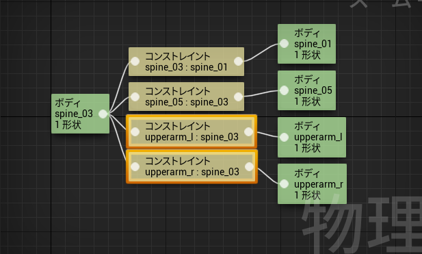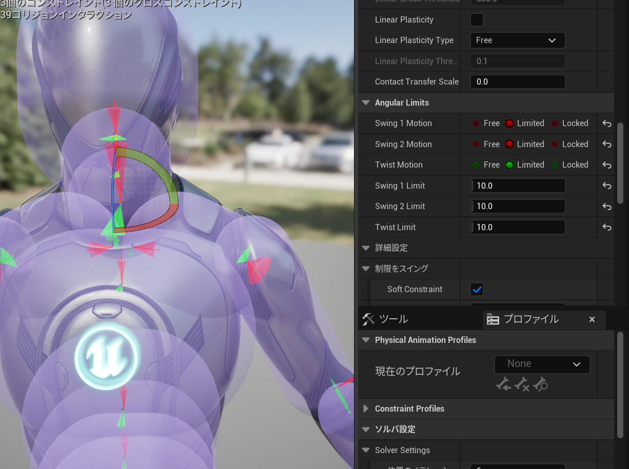 ひとつひとつシミュレーションしながら値を調整するのは大変なので、UEマネキンの物理アセットを参考に数値を決めていきましょう。