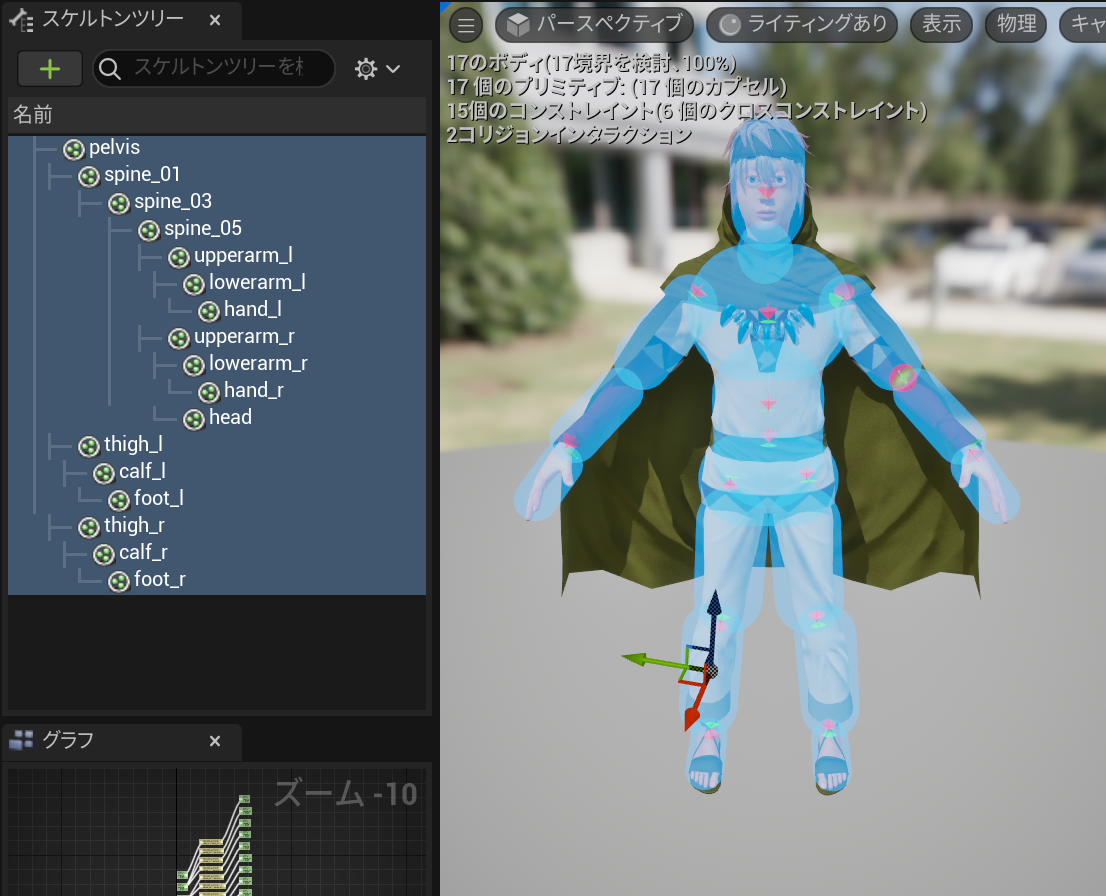 これで物理アセットの設定が完了したのでクロスシミュレーションやリジッドボディの設定を行うことができます。