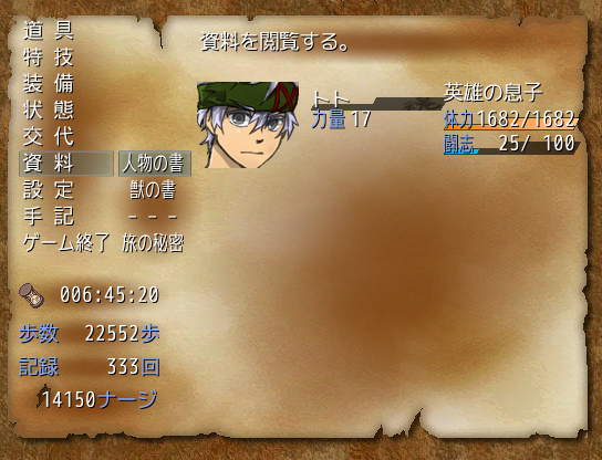 サブメニューにあった「交代」「獣の書」とかをこちらに移動してきています。