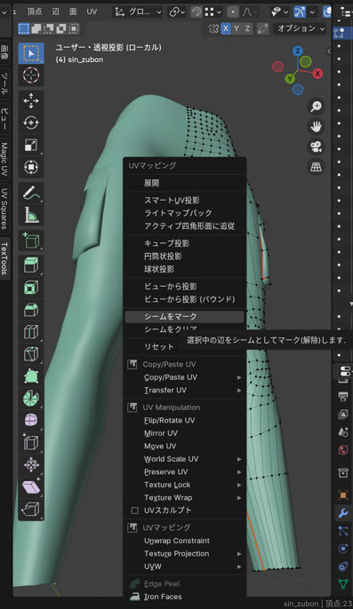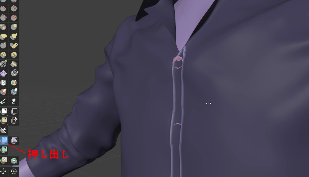 ポケットやボタンなど、体のラインとは関係ないパーツを作る時はShift+Aで形の近いメッシュを新規追加してから形を整えていきます。