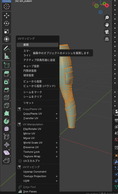 体に沿った楕円形にするために前と後ろのメッシュを一部選択して、