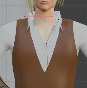 襟元を全体的に広げたいときは襟の端のメッシュを選択した状態でプロポーショナル編集をオンにします。