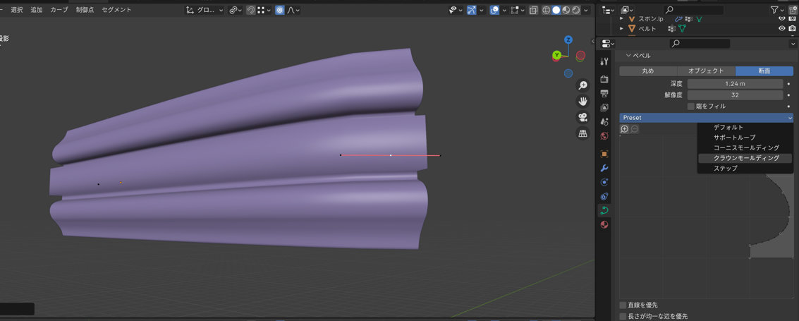 断面を選択するとプリセットからおしゃれなふちどりっぽい形を作れたり、プリセットを選ばなければ自分で自由に凹凸を作れたりします。