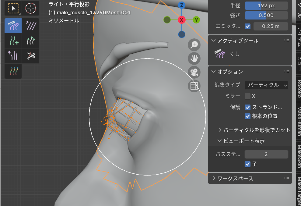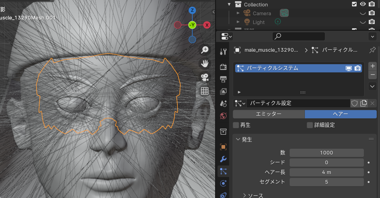 【ヘアパーティクル用のメッシュを作成する】