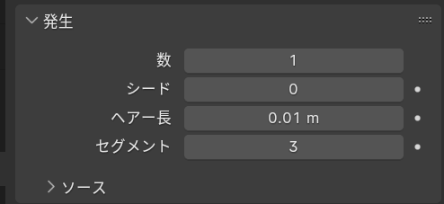 発生の数を1に、ヘアー長を0.01に、セグメントを3にしておきます。
