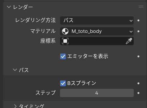 レンダーのBスプラインにチェックを入れステップを4にしておきます。