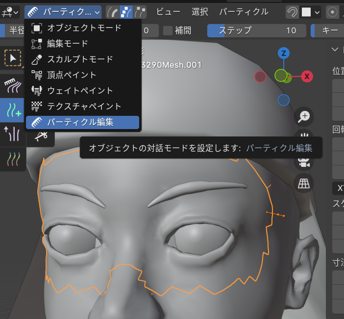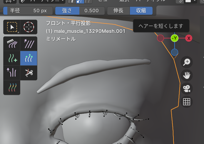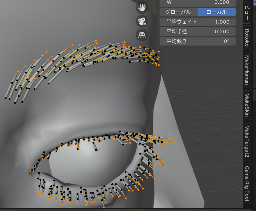 Blenderのヘアパーティクル機能を使って眉毛とまつげを作成します。