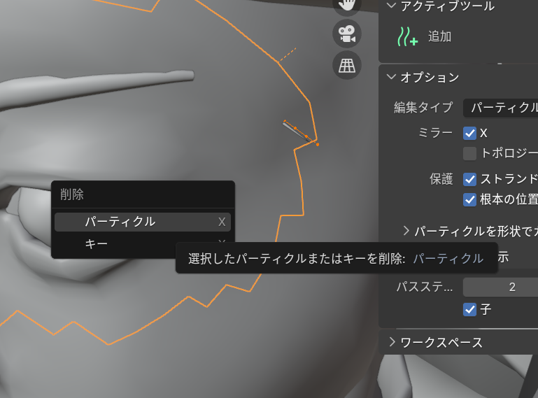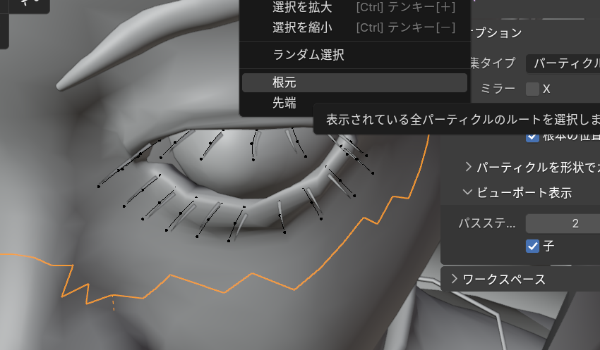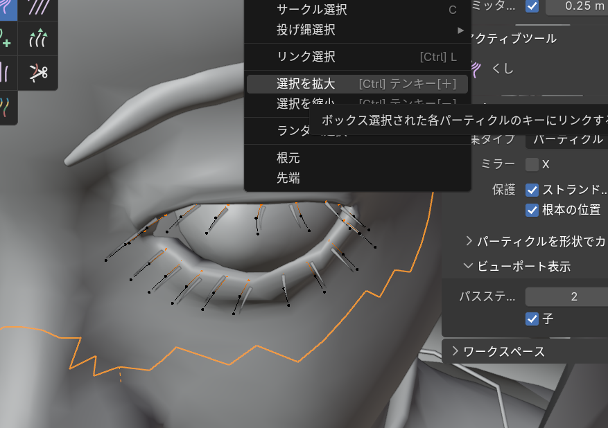 【ヘアパーティクルでまつ毛を作成する】