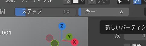子パーティクルの設定をシンプルにして、表示数とレンダリング時の数を1に、半径を0.001にします。