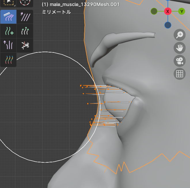 関係ない場所に生えている毛をXで削除してから作業を始めます。
