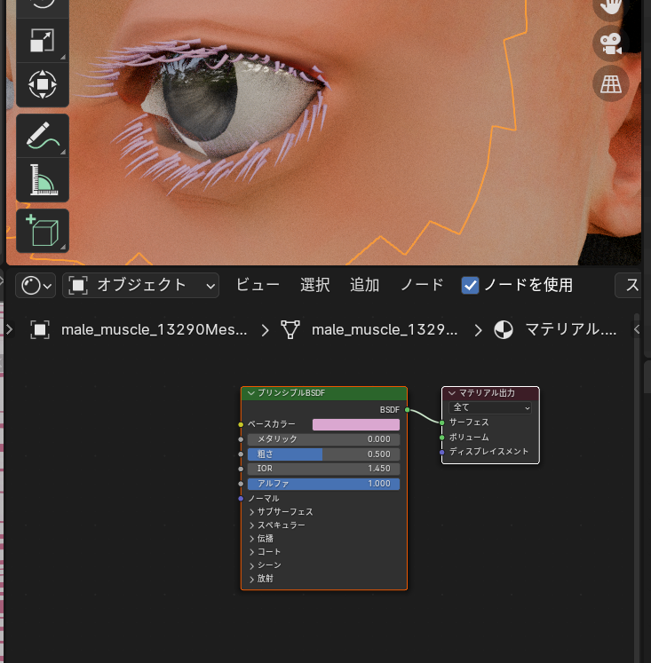 Blenderからうまくマテリアルをインポートできない場合、このようにマテリアル設定します。