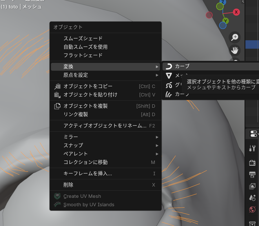 ※あとから修正を加えたいときのためにメッシュ変換する前のカーブオブジェクトを複製しておいておきましょう。