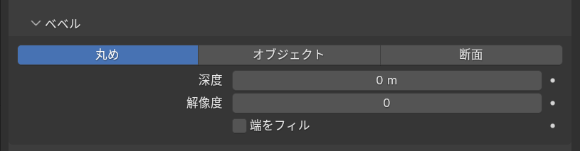 カーブのプロパティでシェイプのプレビュー解像度を1に、ベベルの深度を0.00025、解像度を1にします。
