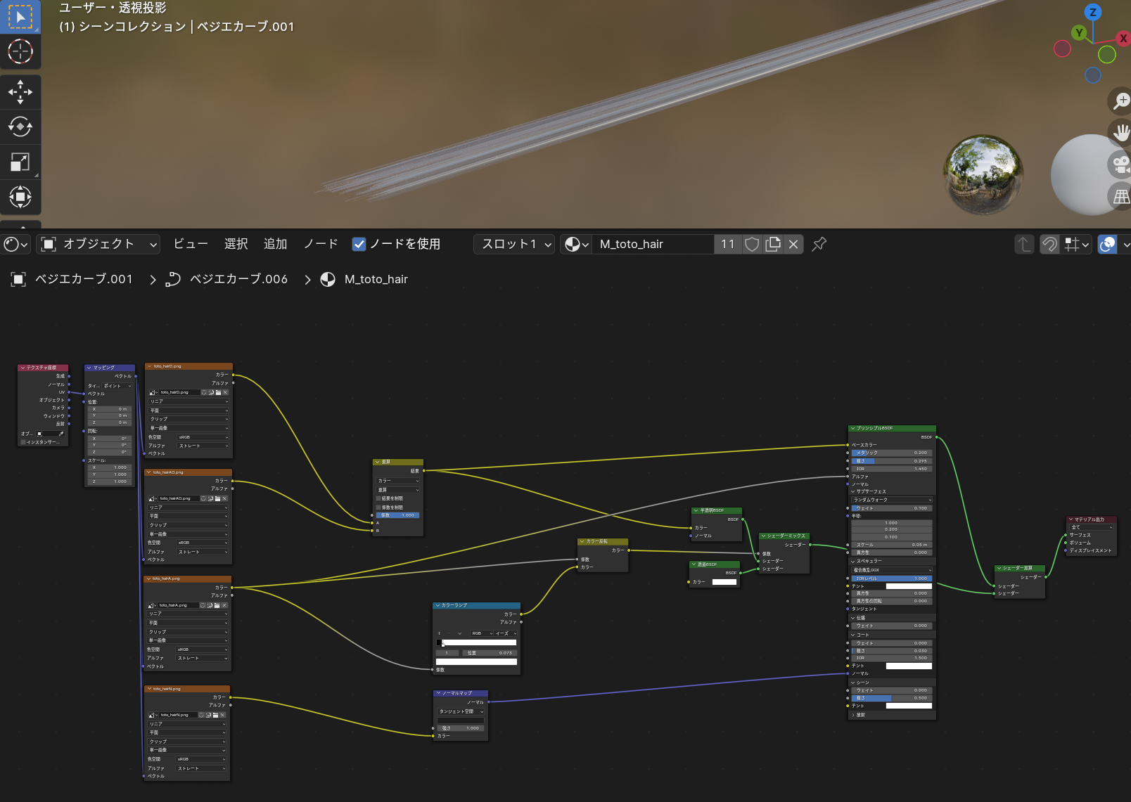 Blenderのヘアパーティクル機能を使って眉毛とまつげを作成します。