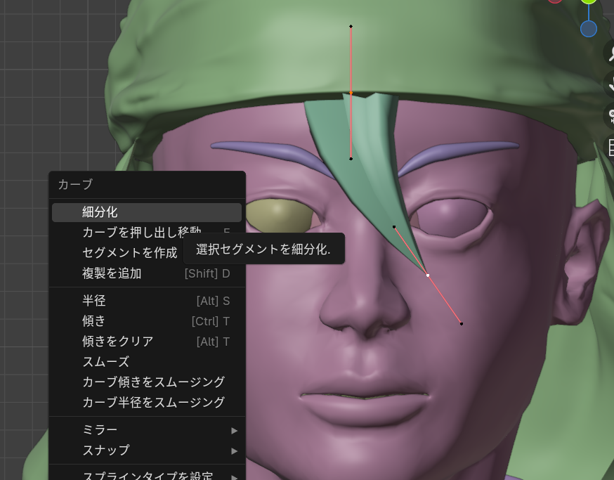 ベジエカーブで眉毛のだいたいの形をかたどった下書きをしておきます。