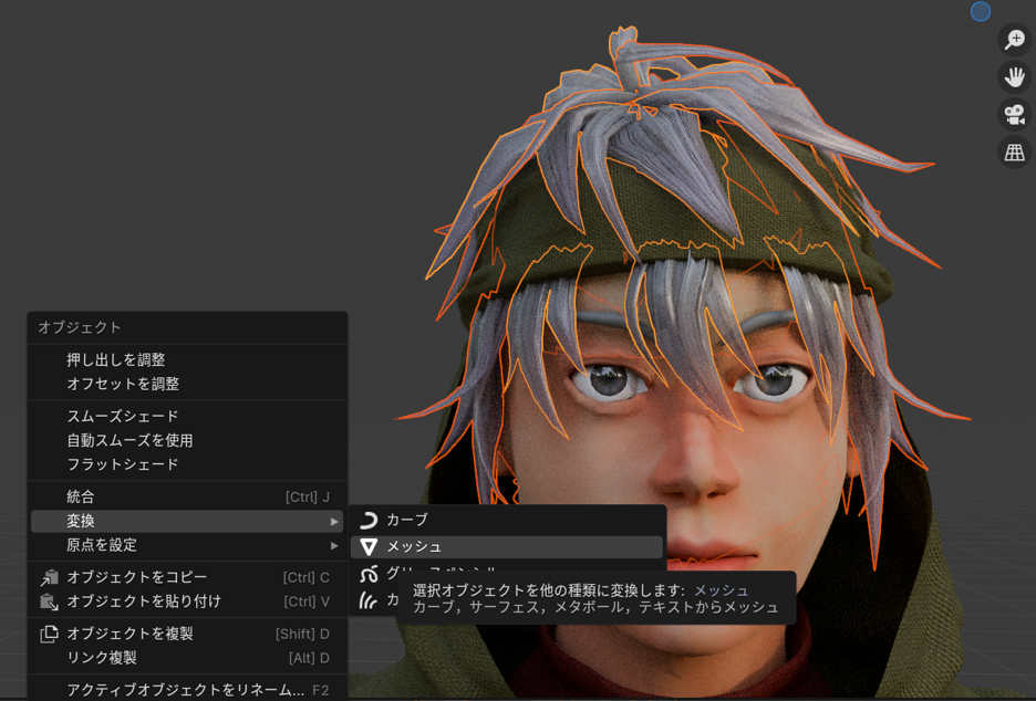 【ヘアパーティクル用のメッシュを作成する】