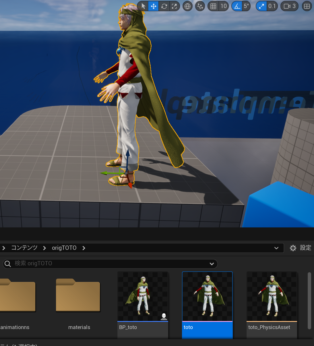 レベル上に自作モデルのスケルタルメッシュをドラッグアンドドロップで追加します。