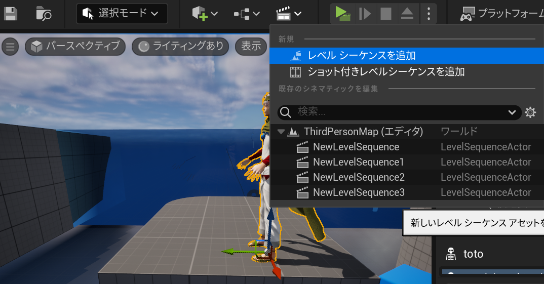 【レベルシーケンスを追加する】