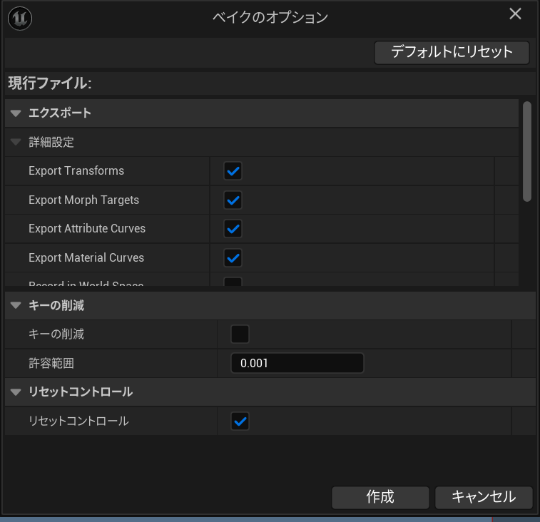【アニメーションをベイクする】