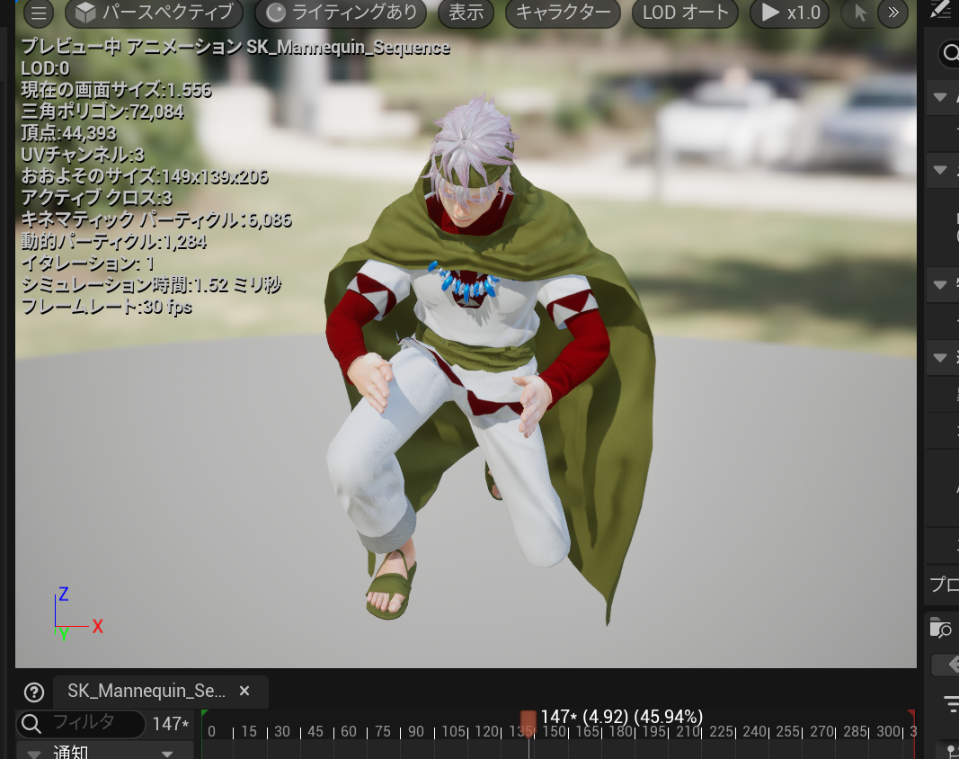 自作モデルを使用する場合は、UE5マネキンに対応したスケルトンで作成し、インポートするときにスケルトンをSK_Mannequinに設定している必要があります。